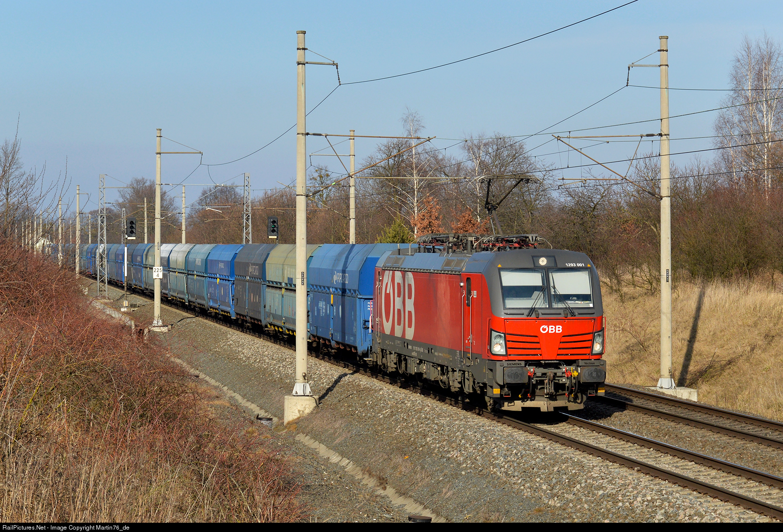 The Vectron electric locomotive 1293 001 hauling a freight train driving from Petrovice u Karviné to Austria.