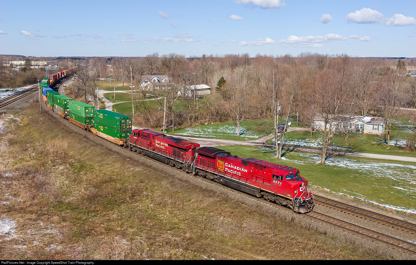 CP 8071 Leads a two unit Intermodal through Greenwich Ohio Eastbound