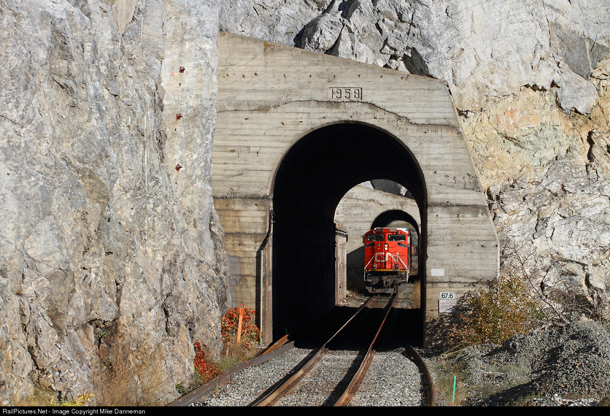 Westbound Canadian National freight 301 threads the tunnels at Martel, British Columbia, in the Thompson River Canyon on September 26, 2015.