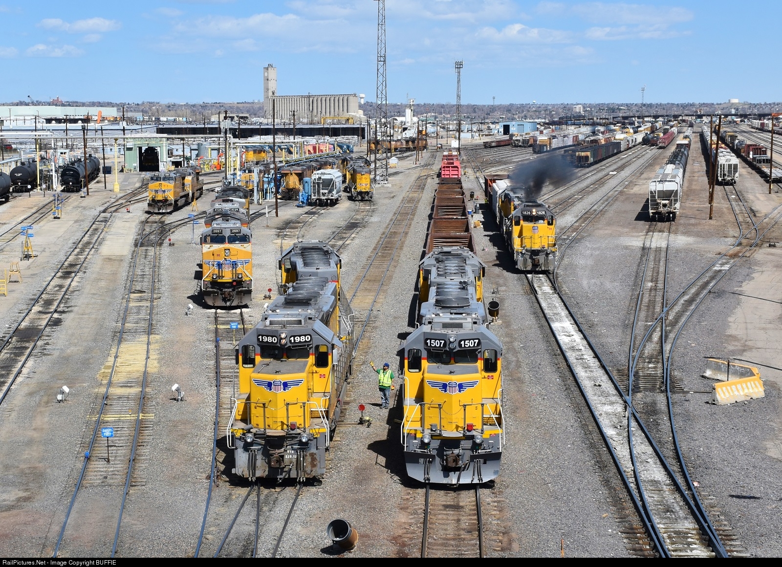 UP 1507 (GP40M-2) and other light power work the UP's North Yard in Denver, Colorado.