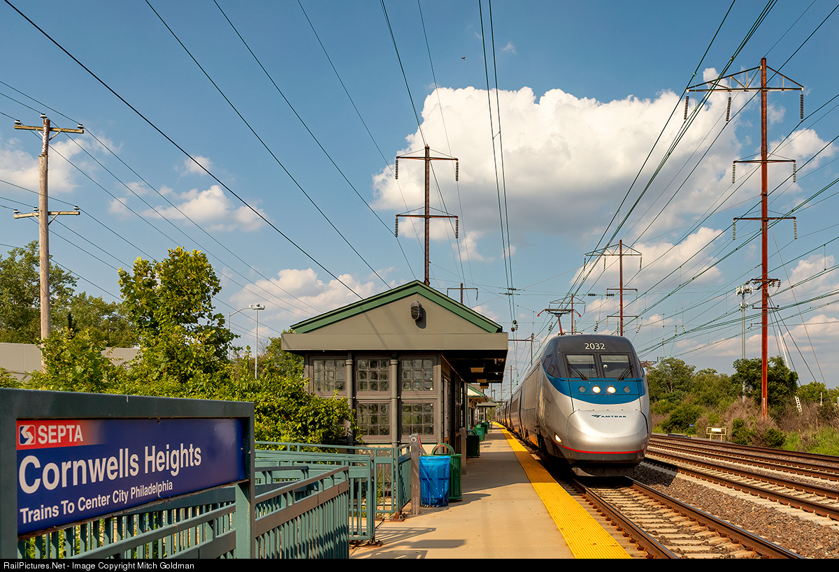 Amtrak's high speed Acela barrels through Bensalem, PA, passing the - Cornwells Heights station, I believe - interestingly, on track 4, typically reserved for SEPTA commuter trains and some Amtrak NY to Harrisburg Keystones.