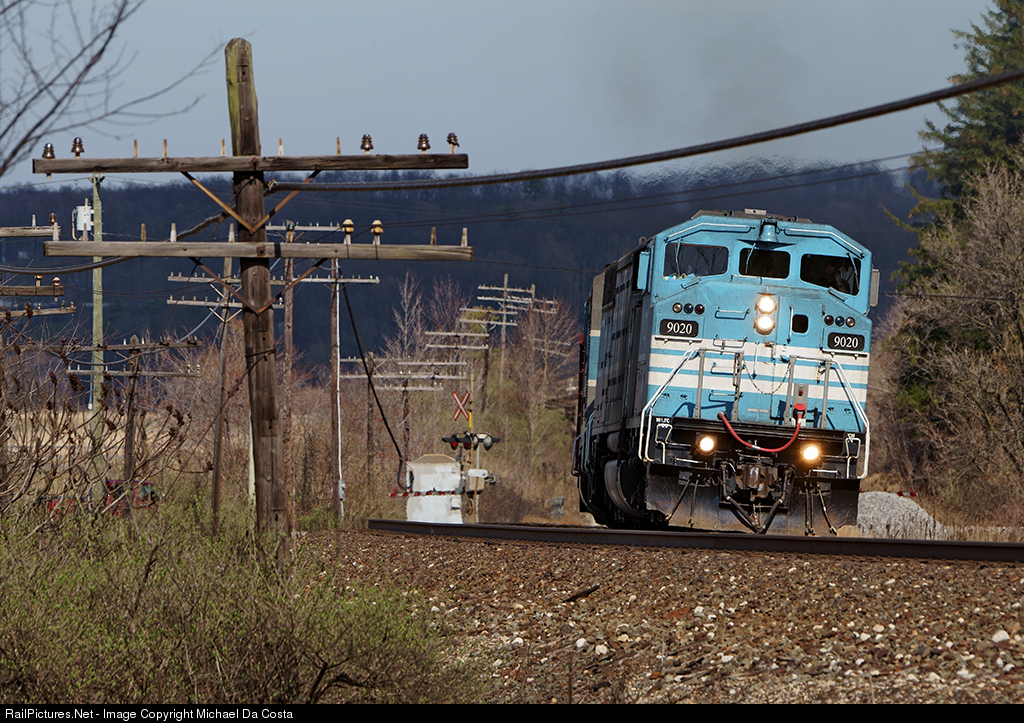 Full throttle and nearing the crest of the grade, both CMQ barns have a loaded herzog ballast train in hand on the Campbellville grade..