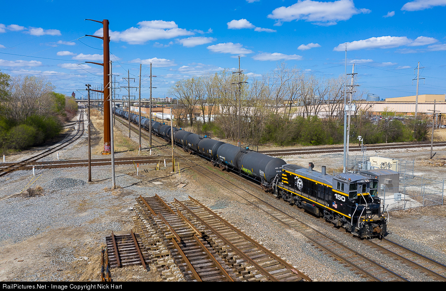 | The North Outside Industry job, better known as NOSI, makes its way south across the diamonds with the former Illinois Central at Hawthorne. The train consists of cars from Charter Steel and Best Foods. The crew will also switch Home Products a few miles up the line before ultimately heading home for Clearing Yard. MP15AC #150 leads the way as cumulus clouds dot the sky on a nice Spring afternoon. |