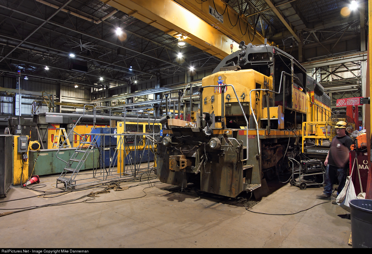 Union Pacific EMD SD40-2 No. 3071 is in the process of being remanufactured into a SD40N at railroad’s capable shop at North Little Rock, Arkansas, on May 18, 2015.