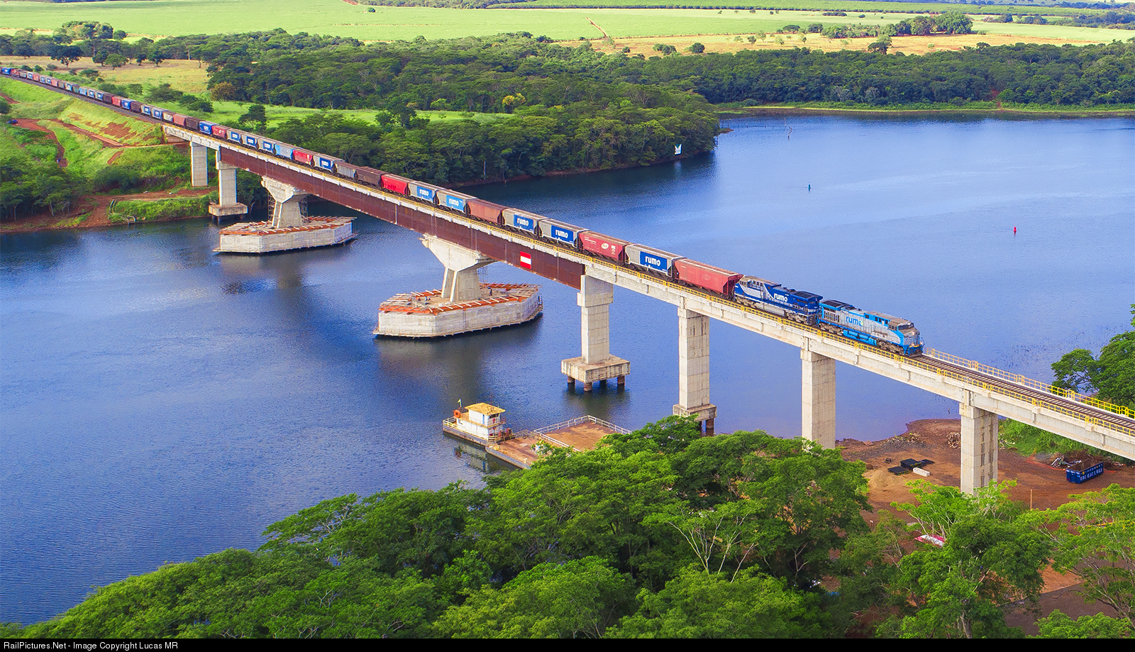 Southbound train Y22 from São Simão, travelling through North-South Railroad, photographed over Rio Grade bridge.