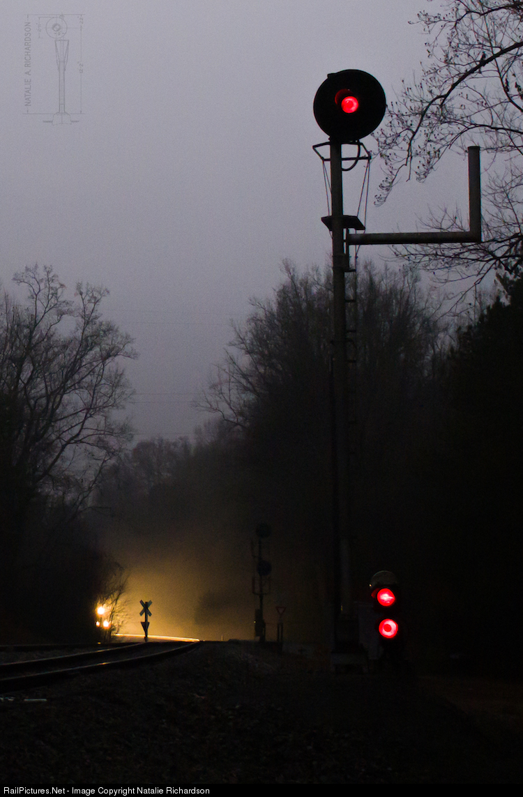 | The quiet pattering of rain and onset of evening darkness are brought to a sharp and deafening halt as the roar of empty CSX ethanol train K412 echos through the Tennessee hills. The headlights can be seen outlining the 1990s CSX modernized US&S searchlights which for now continue to find sanctuary from further modernization or worse–replacement on the ex L&N KD Subdivision. |