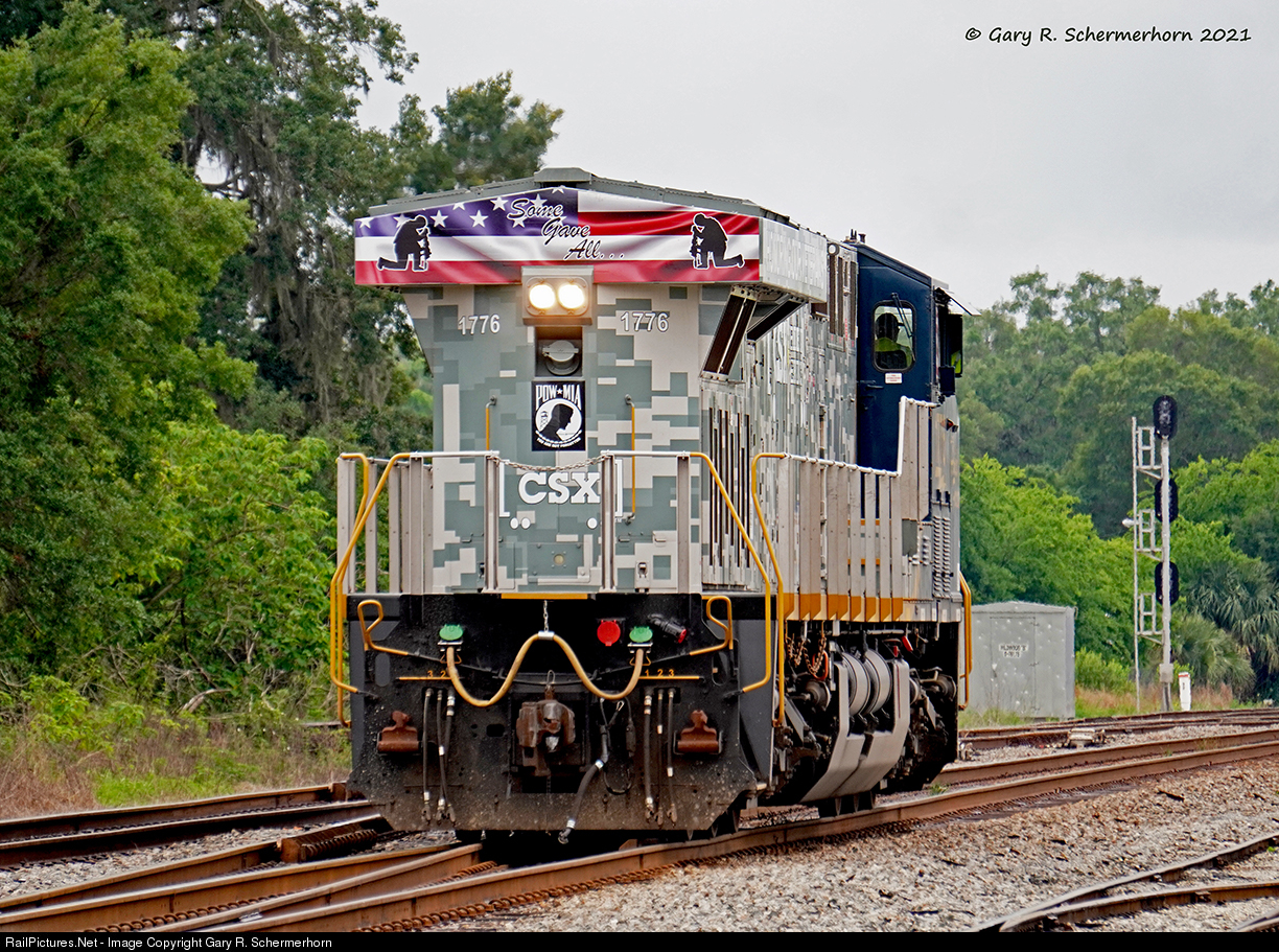 On a cloudy Monday afternoon after torrent rains, the “Spirit of Armed Forces” unit reverses back to its train at Wildwood Yard after making a drop. The crew will shortly before proceed south for Miami.