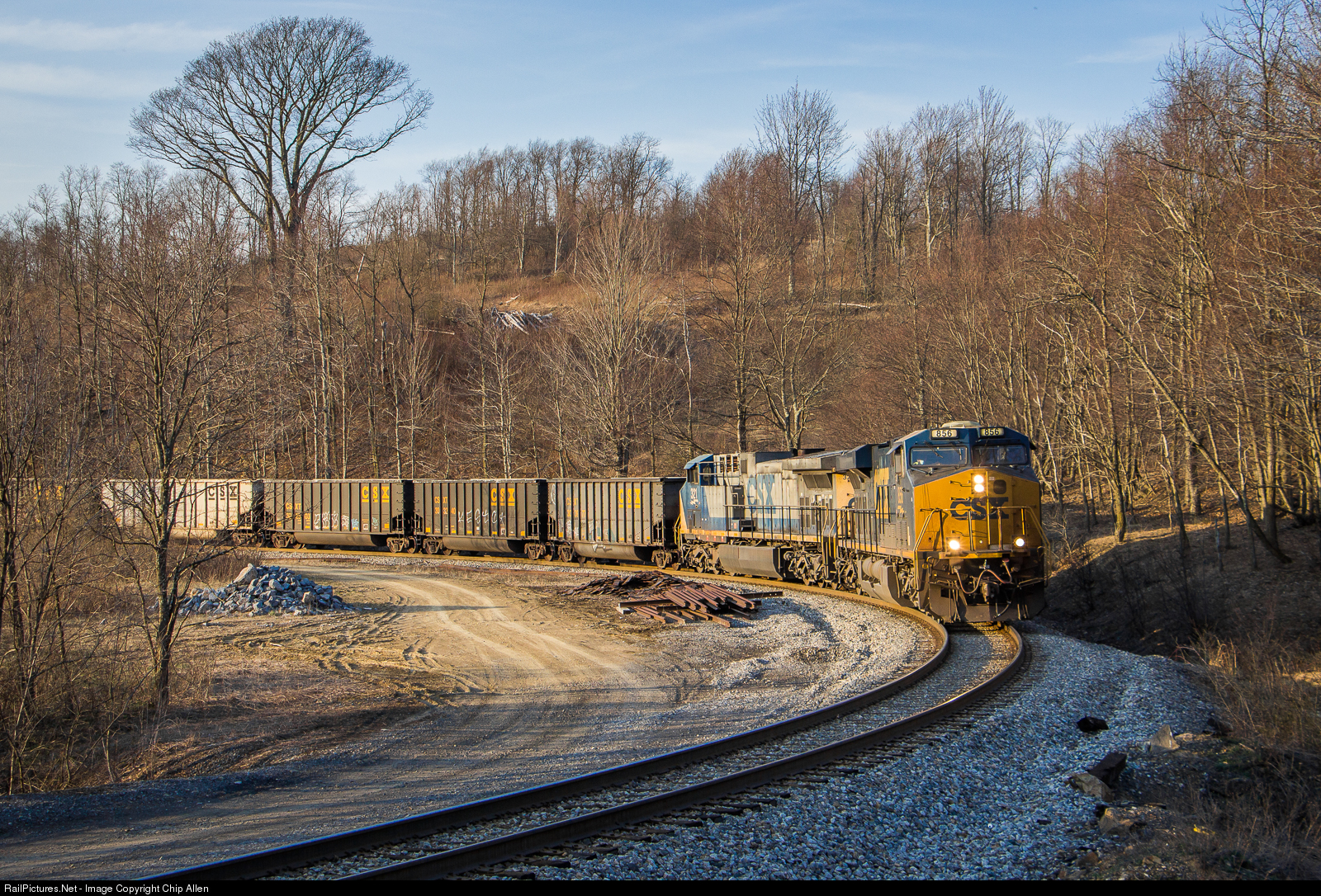 With about a minute of sunlight left, CSX ES44AH 856 and CW44AH 321 are seen on the point of empty hopper train U050, which is dropping down the Stony River Subdivision's loops into Bayard, WV. This train is making its way from the Mount Storm Power Plant to Leer Mine in Grafton. Once the site of a large Island Creek coal company facility, this section of the former Western Maryland is now a lonely piece of railroad, meandering around reclaimed mountains and valleys that are a testament to what once was.