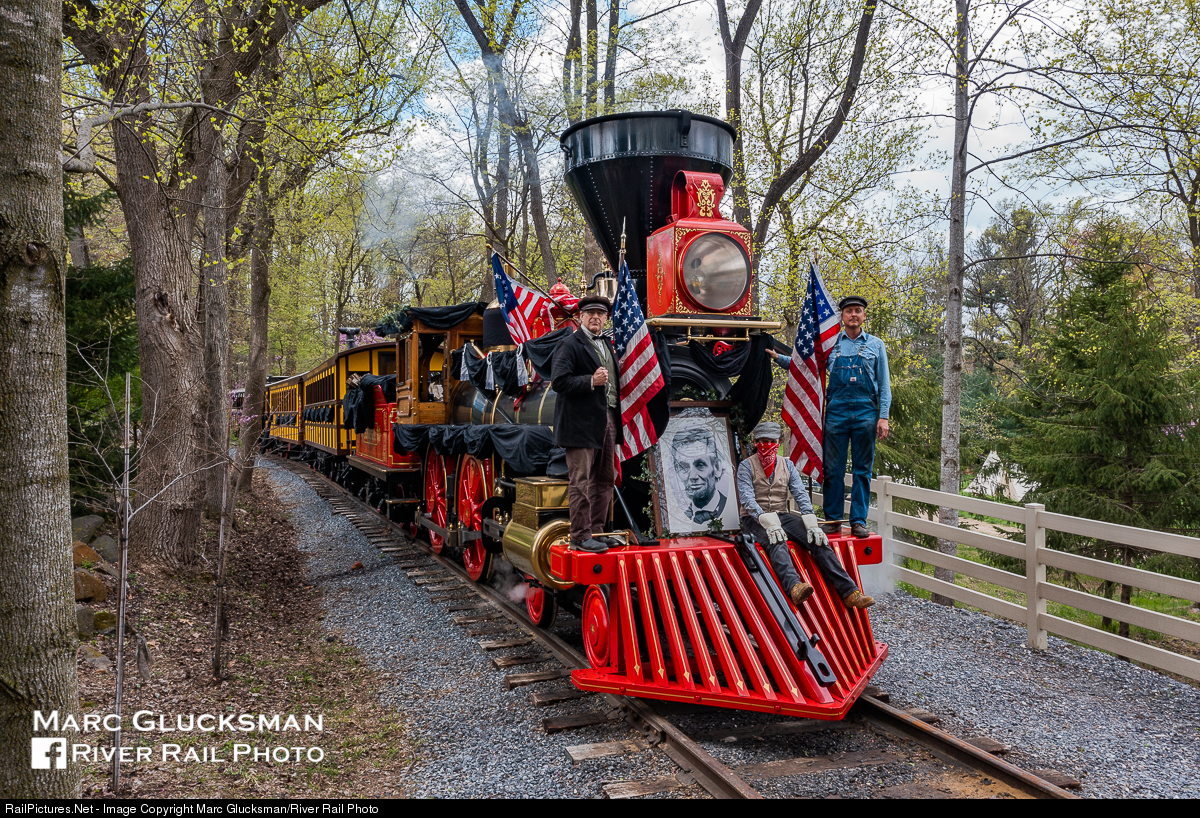 We're Thinking Of You Honest Abe. On April 22, 1865 at 12:05 PM, Abraham Lincoln's Funeral Train passed through Elizabethtown, Pennsylvania on the original right of way of the Pennsylvania Railroad. On April 22, 2021 at 12:05 PM, a reenactment was staged for the 156th Anniversary of the event at The Star Barn. "Leviathan" 4-4-0 331 (Kloke Locomotive Works of Elgin, Illinois, 2009, based upon the 1868 Baldwin design) stands in for PRR 331, hauling 3 cars including the Lincoln Funeral Car. This train operates when events are held at the venue. The crew agreed to pose for a photo at the end of the day.