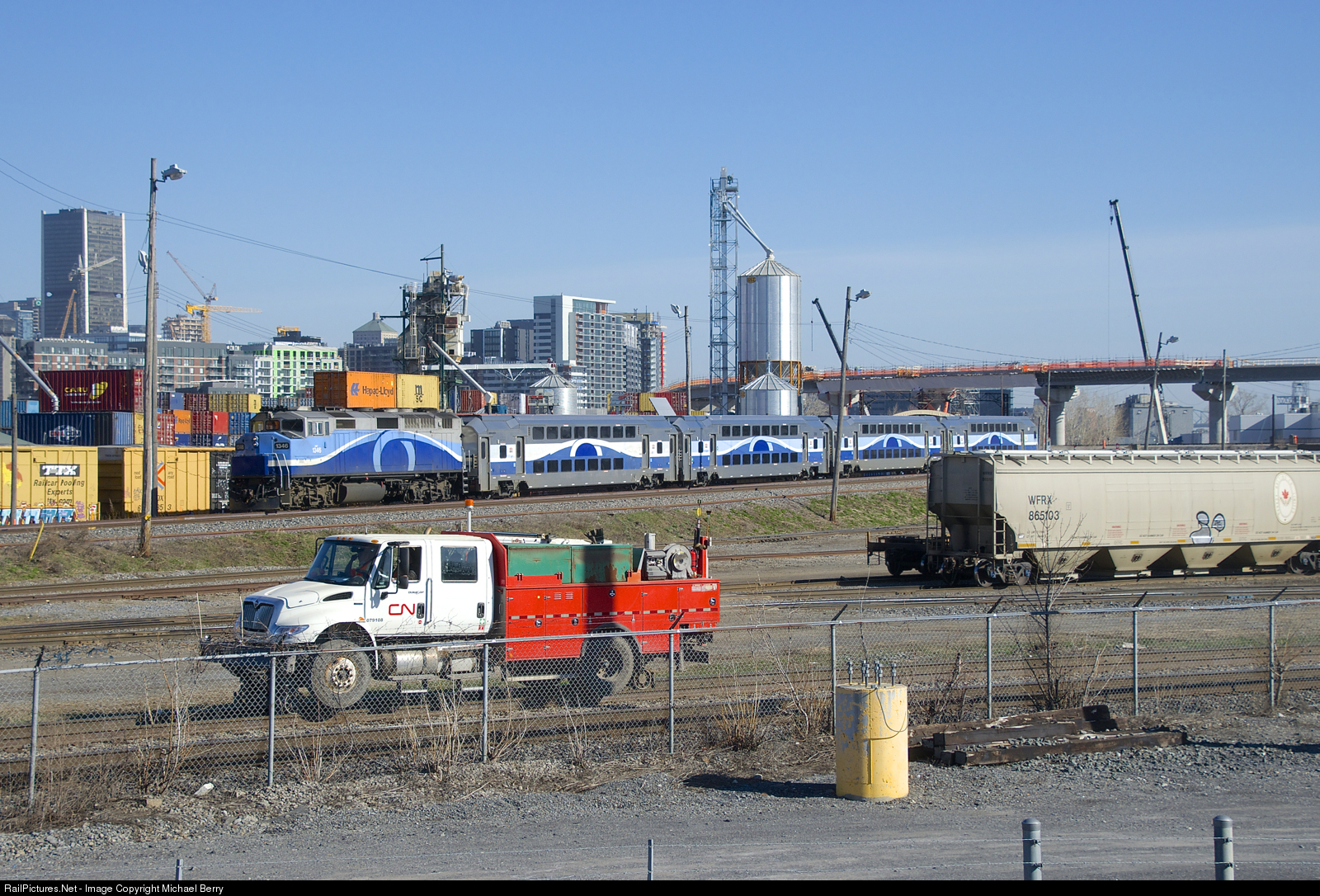 The second and last train of the day to arrive in downtown Montreal from Mascouche has dropped off its passengers and is temporarily heading west on CN's Montreal Sub. Soon it will back up towards the EXO Maintenance Centre here and await the evening rush hour.