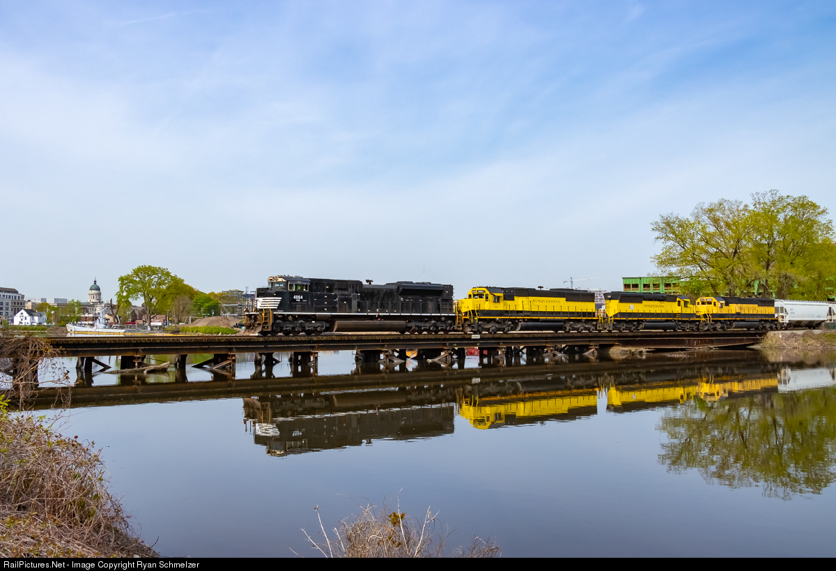 The NYSW SU-100 (with the WS-1 local crew on board as a relief crew) crosses the Hackensack River into Bogota, NJ with the USS Ling in the background. In the lead is one of the railroad newly acquired SD70M-2 locomotives. This scene is soon to be drastically different as condos are being constructed in the are behind the locomotives and the submarine is slated to be removed at a yet unknown future date.