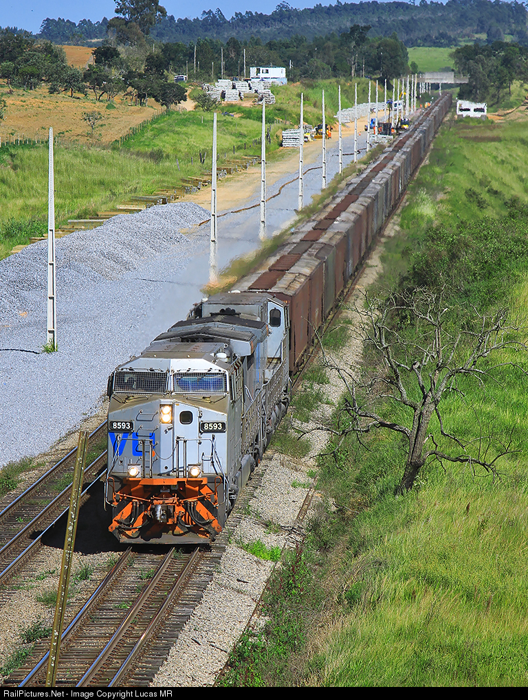 | Southbound loaded VLi U46 led by AC44i #8593 photographed at GuaianĂ£ yard, before arrive at Canguera. |