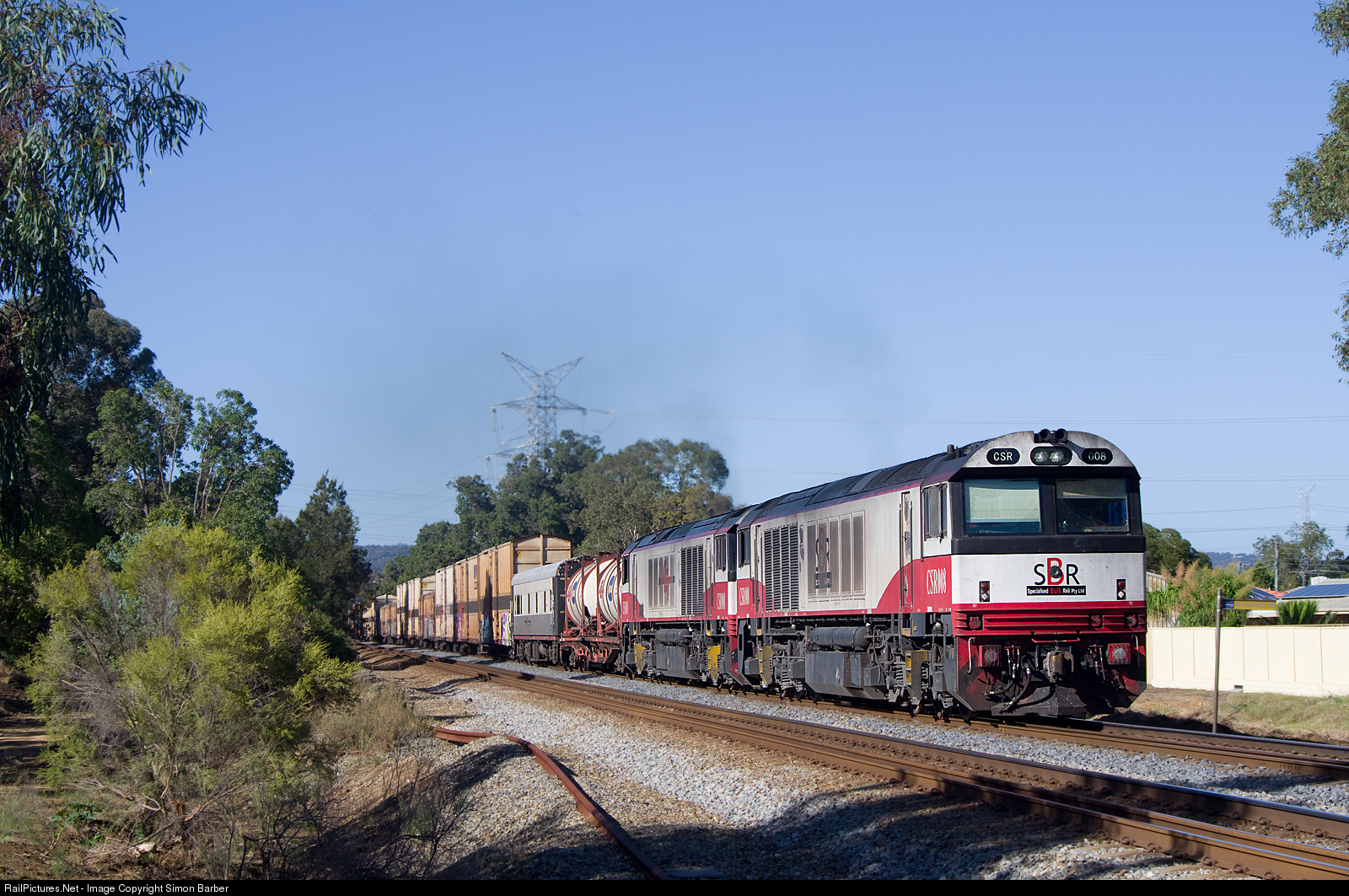 CSR008 & 001 lead an SCT freighter for Melbourne through the eastern suburbs of Perth.