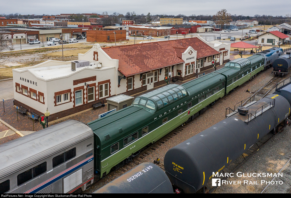 More About Ardmore. Webb Rail's former Northern Pacific Railway Budd built Pullman dome/sleeper 313 (WEBX 801044) and former Northern Pacific Railway Budd built dome/coach 549 (WEBX 801045) were on the rear of Amtrak Train 821 (Heartland Flyer) as it departed Ardmore, Oklahoma on Tuesday, December 29, 2020. After making the trip to Oklahoma City, Oklahoma the night before leading, they would trail for this segment, the first private cars to make the FTW-OKC trip in many years. The history is not clear on the subject of who or how, but the census seems to be that it is not a coincidence that the names Ardmore, Overbrook, Paoli, and Berwyn decorate this segment of the railroad, and relate it to either a former employee of or financial relationship to the Pennsylvania Railroad.