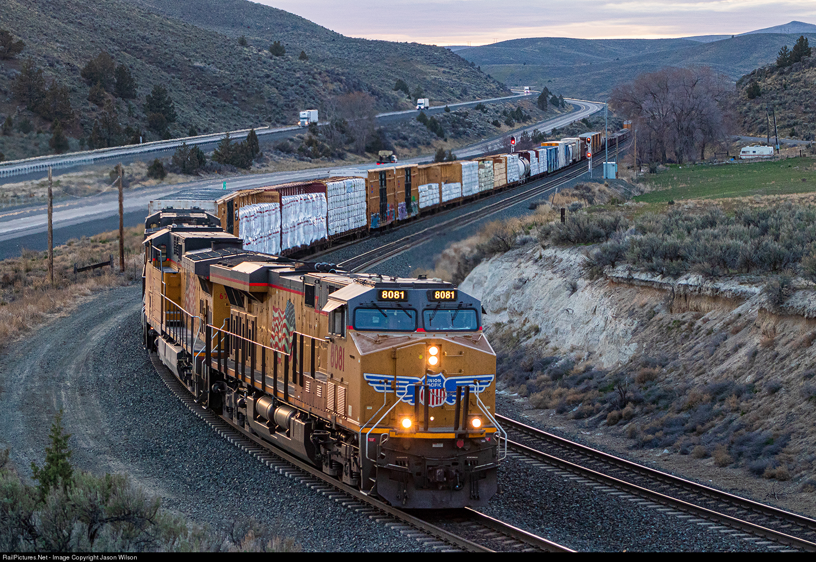 Once DS got him by a fleet of westbounds near Baker City, there was nothing but wide open rails and high greens and the race was on to Nampa where they'd be getting off for the day.