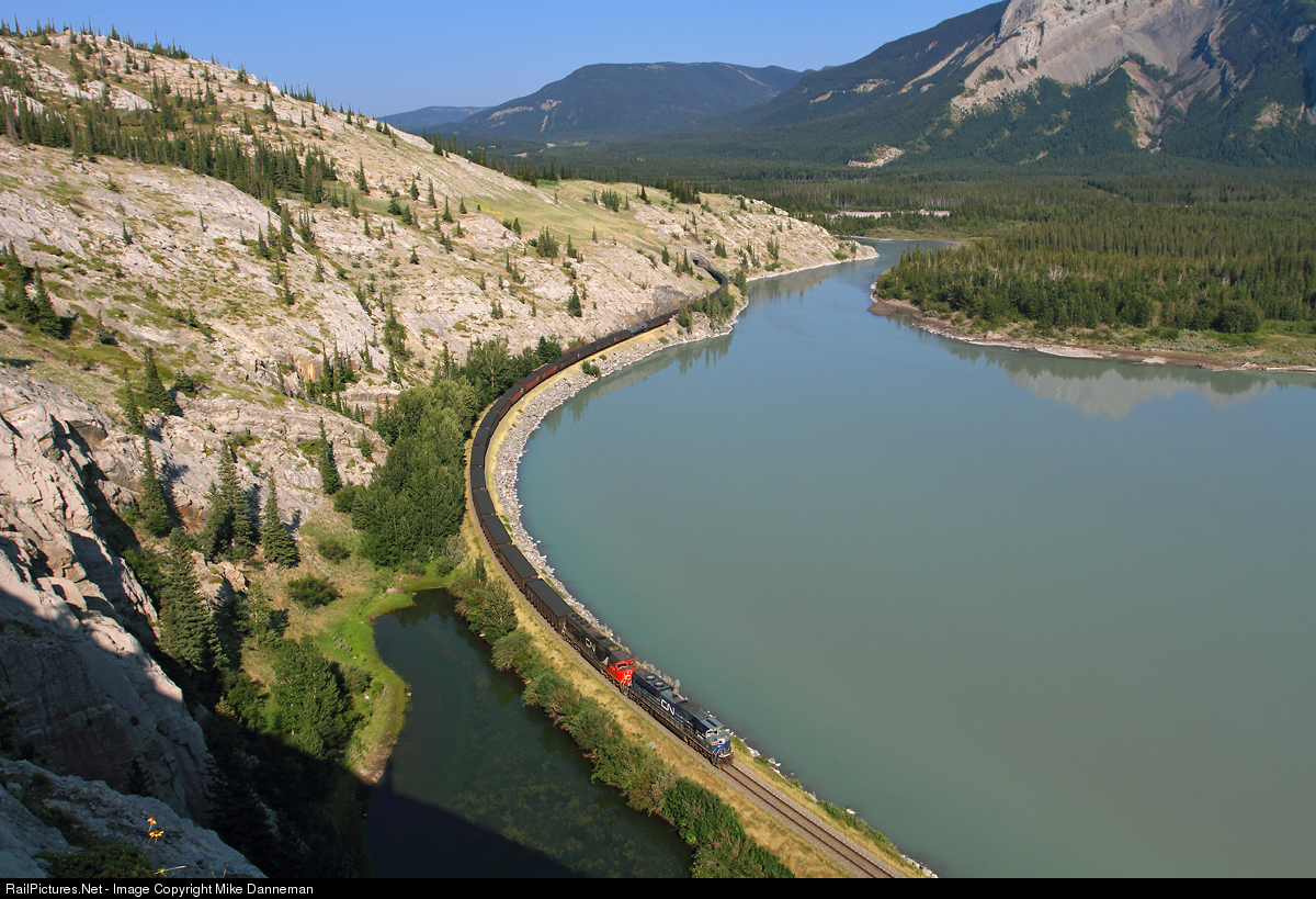 On the eastern edge of Jasper National Park, Canadian National train 303 exits Brule Tunnel and approaches Park Gate, Alberta, on the afternoon of July 12, 2014. Leading the train is CN EMD SD70ACe No. 8101, still in blue and gray demonstrator paint.
