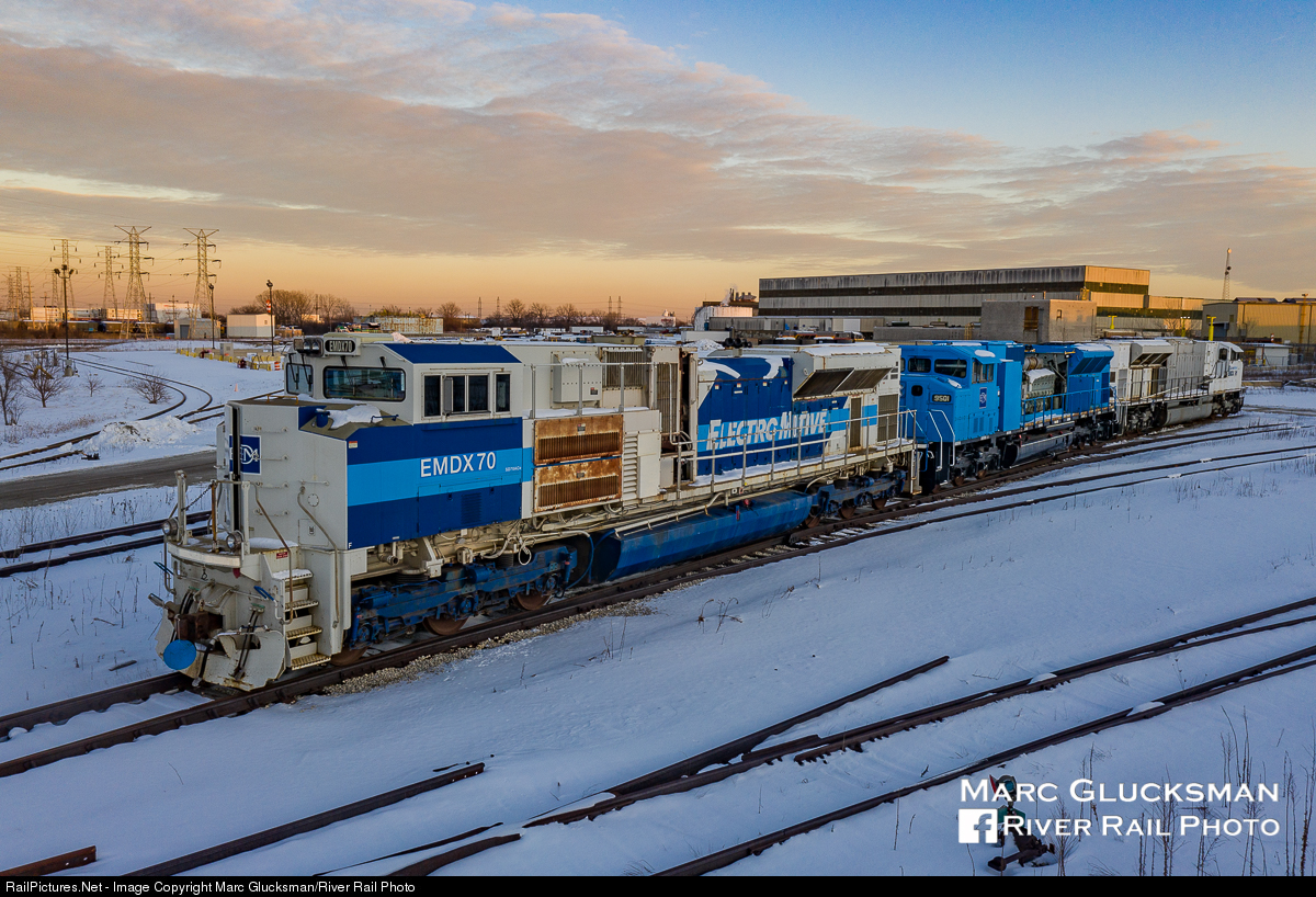 The Mother Of All ACes. At sunset on January 28, 2021, EMDX 70 (SD70ACe), 9501 (SD60MAC), and 91 (SD90MAC-H) sit at the Progress Rail/EMD LaGrange facility in McCook, Illinois. When 70 was built in 4/2003, it was the first of the ACes that replaced the SD70MAC in EMD's offerings, and its variants are still manufactured today.
