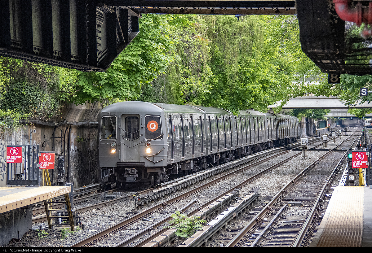 Some twenty years after the orange Q bullet was discontinued (it was used for Sixth Avenue service from 1988-2001), it inexplicably showed up on R68A car 5114, leading a New York City subway 2nd Avenue/Broadway Express/Brighton Local seen rolling into the Newkirk Plaza station, in the city’s Flatbush neighborhood. (It has been yellow since 2001.) Adding to the confusion, car 5129, a little further back in the train, was displaying an orange B train bullet! (Brooklyn, New York – May 11, 2021) And a big shout-out to my three-year-old grandson, Emmett, who knows more than I about New York City’s subways, for pointing out the archaic marking on the front of this train!