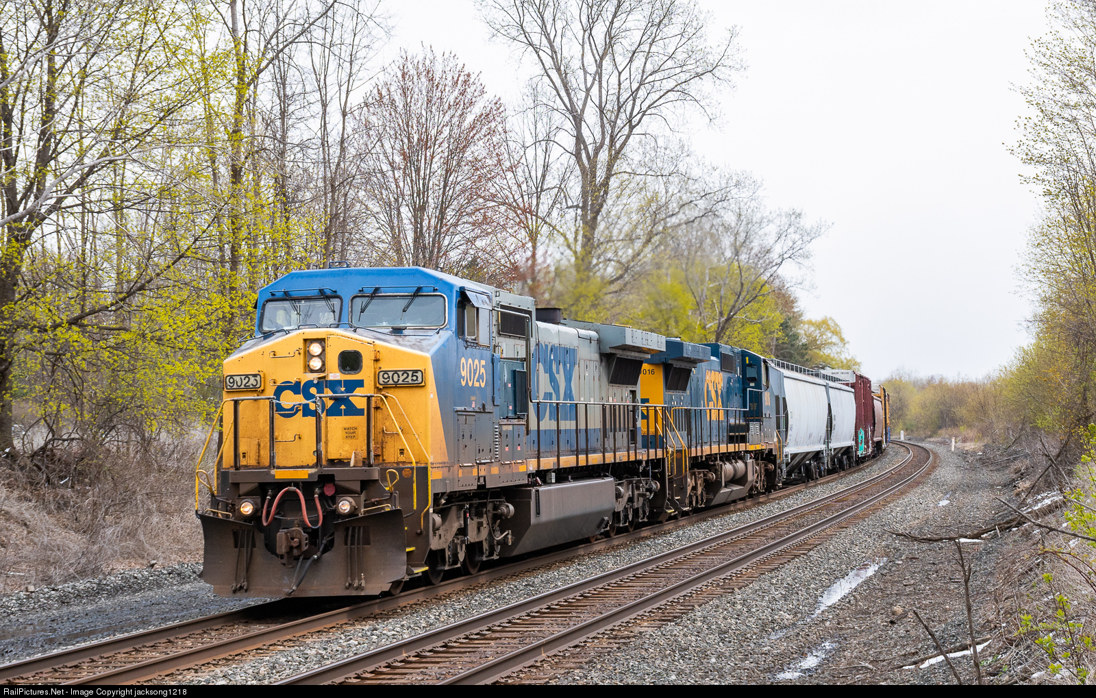 CSX train Q367 (Selkirk, NY - Chicago, IL) works its way west through the MP 385 curve in Churchville, NY with a pair of recently reactivated GE C40-9Ws.