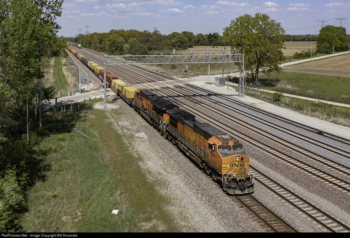 This has to be the biggest signal bridge I've ever seen. This westbound stack train is accelerating out of the massive BNSF Logistics Park yard only a couple miles away. The two mainline tracks are in the foreground with four temporary storage tracks at the rear.