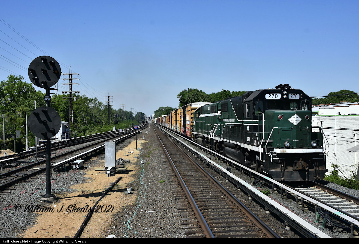 | With track 2 OOS due to construction the RS 40 ran east on Main Line Track 1 at Floral Park. GP38-2's 270 & 261 and large daytime freight of 53 cars headed east for Pine Aire. At Pine Aire the crew would return to Fresh Pond with a whopping 62 cars. |