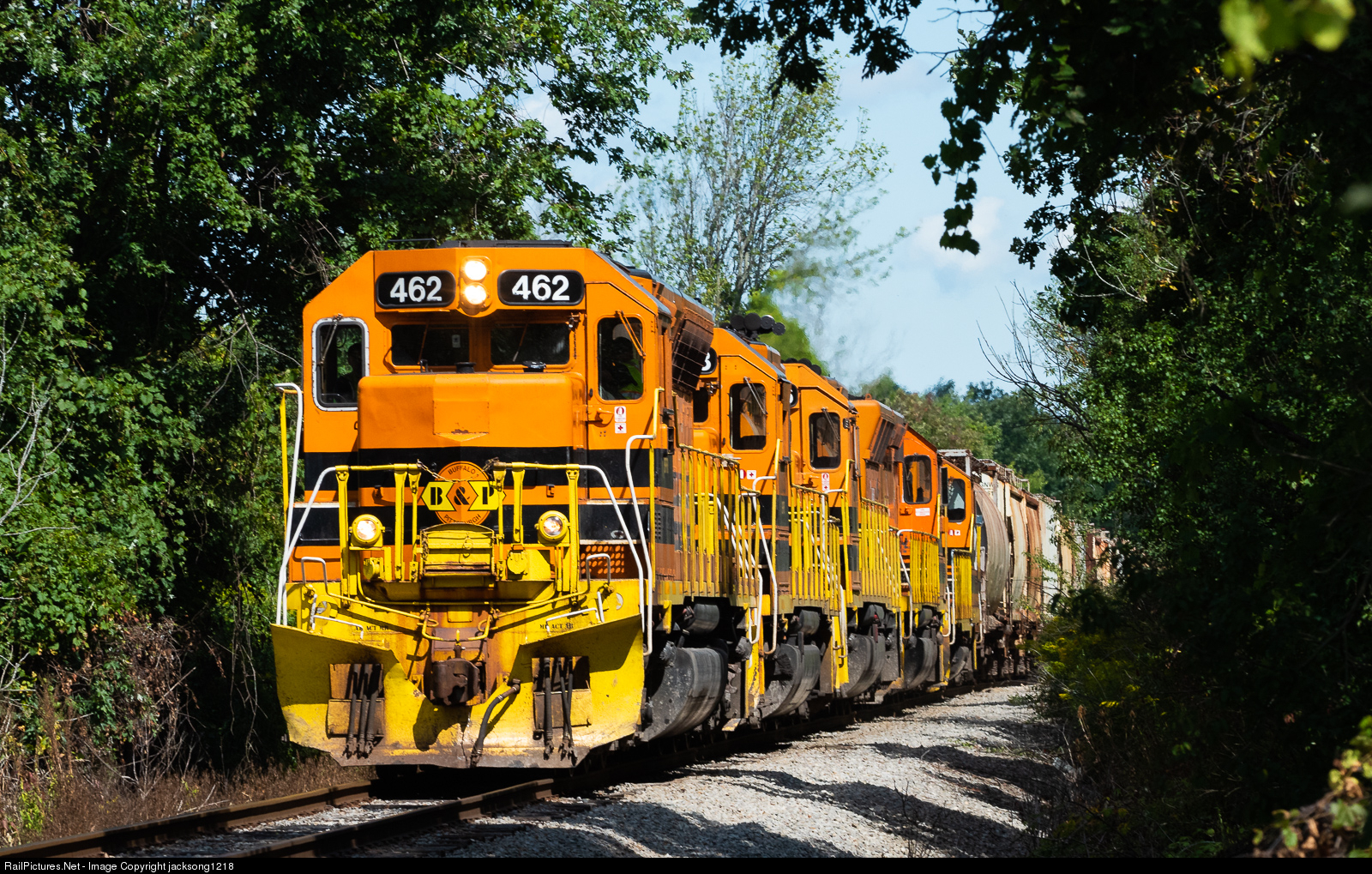 | Buffalo & Pittsburgh EMD SD40M-2 number 462 leads the southbound R&S GW-1 through Caledonia, NY as it approaches Graney Road. 462 has since left the R&S and is now on the Georgia Central. |