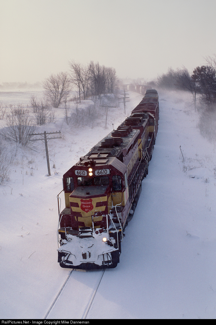 The area around Fond du Lac, Wisconsin, received over two feet of snow over the previous three days before a frigid Arctic high settled in over the region. The next day, on January 27, 1996, Wisconsin Central train 43 has just passed through Byron as it begins its descent of Byron Hill, south of Fond du Lac, in extremely high winds and well below zero temperatures.
