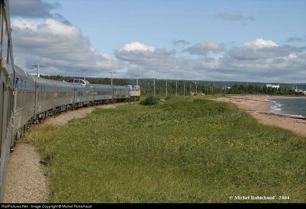The Chaleur is operating over some of VIA's most panoramic road in Eastern Canada. This is the view along the beaches in Pabos, just west of Chandler, QC.