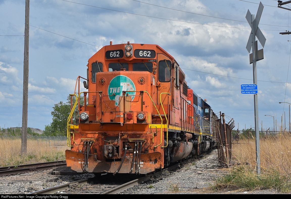 | EJ&E 662 shoves a coke train into Gary works. This unit is nearly impossible to see leading nowadays as it lives on the East end of Kirk as a trailer on a hump set, this was the first time I've seen it on the point in about a decade. |