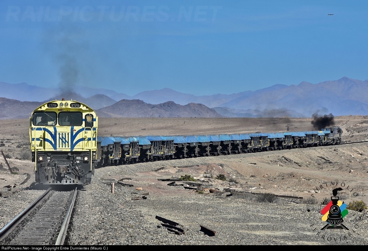 Heavy work for trains in the atacama desert, northern chile. Having already outgrown the Los Colorados Mine and the North Junction, and added two helper locomotives, the train of railroad company Ferronor loaded with iron, begins the difficult 3% ascent to Chehueque. The most difficult point is in Chacritas, with slopes of 3,2%, in what would be the summit of the route.