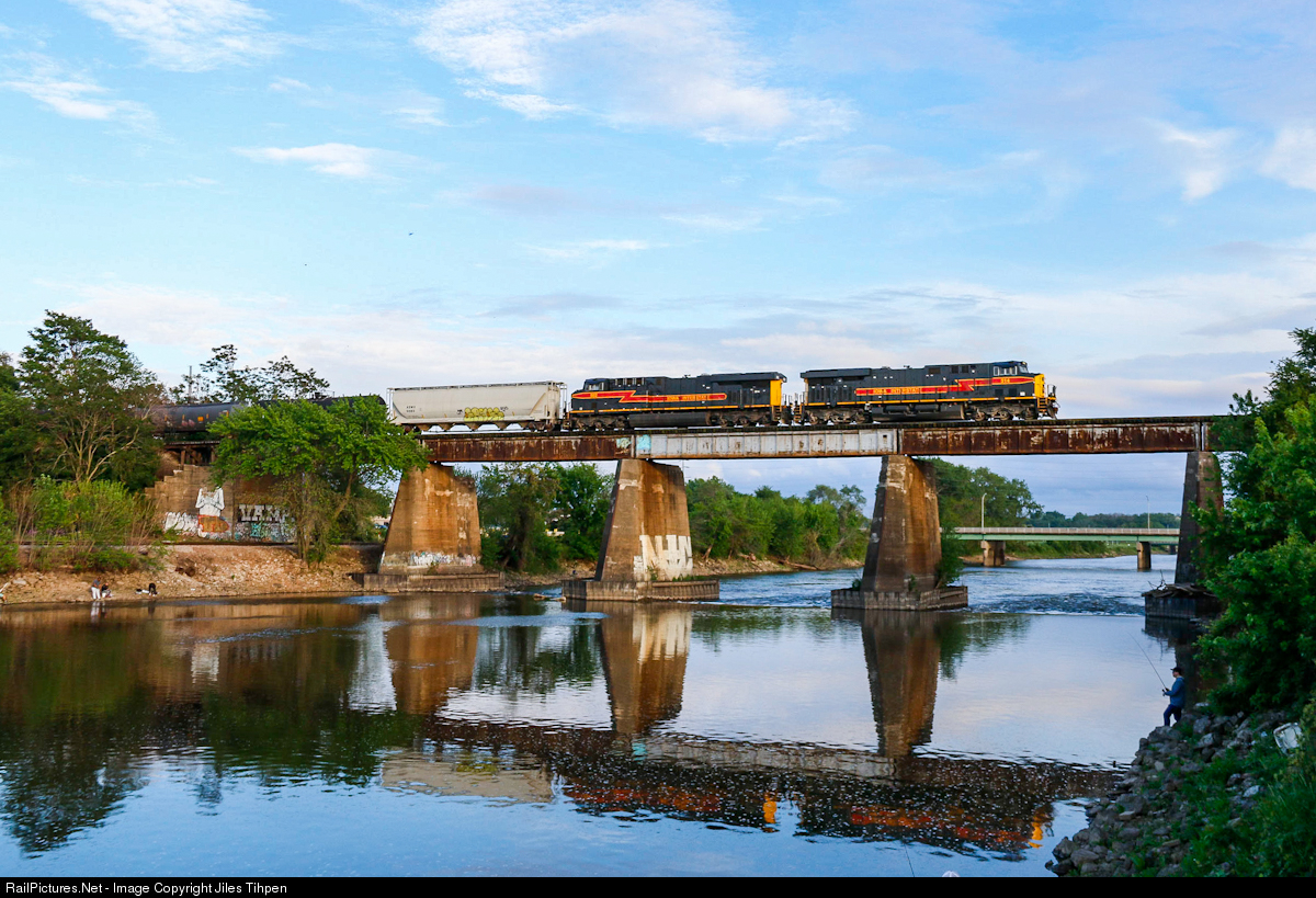 | Over the past few weeks the usual east and west trains on the IAIS have been running on a new schedule to accommodate a tie project going on on the Iowa City Subdivision making for nice afternoon and evening light for the usual midday BICB. Here BICB 22 crosses the Iowa River in Iowa City under a beautiful late spring sky. |