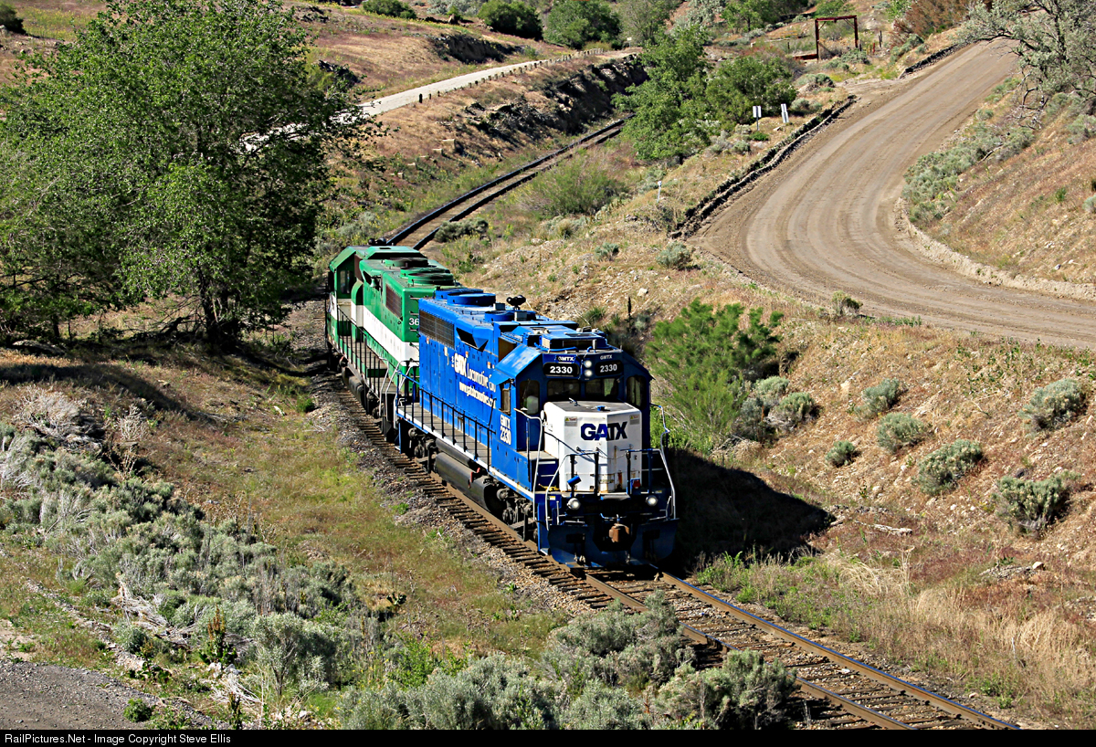 | I was able to catch a different set of power operating at Rio Tinto, Kennecott this afternoon. After switch down at Garfield GP38's GMTX 2330, and SSRX 3670 are heading back towards the Kennecott smelter light power. |