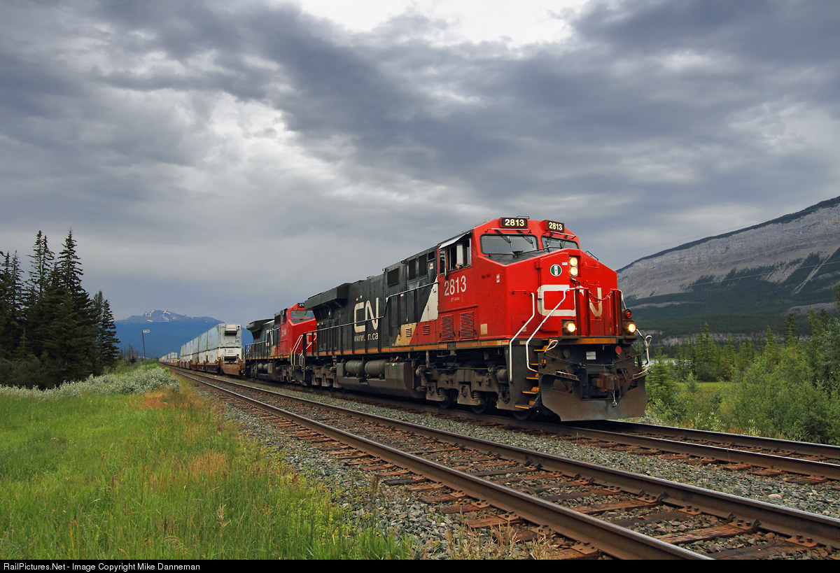 Canadian National intermodal train 112 departs Henry House, Alberta, on CN’s Edson Subdivision in Jasper National Park on the afternoon of July 17, 2013.