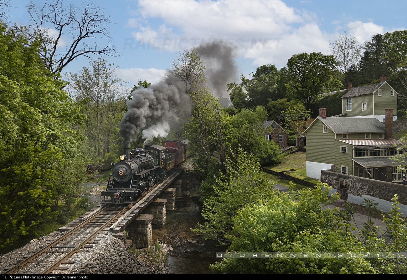 New Hope Railroad engine 40 crosses the Bridge at Mechanic Street, on the outskirts of the town of New Hope, Pa.