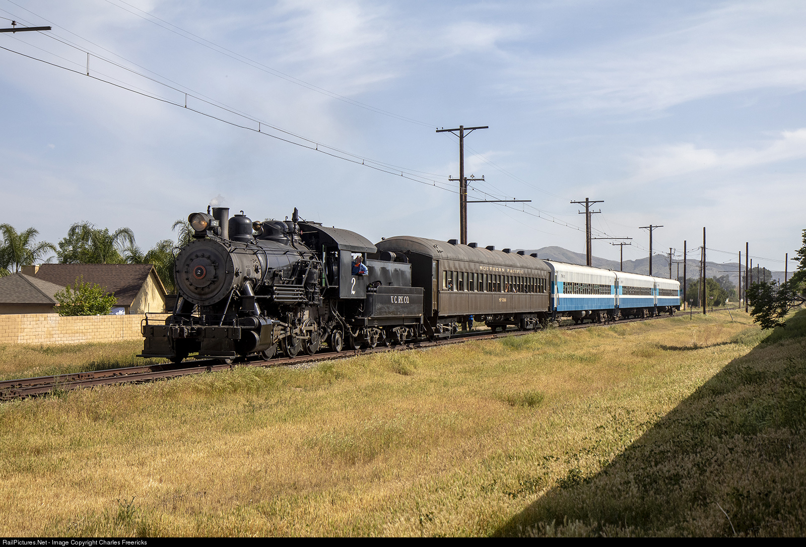 On its last day prior to going in for its 1,472 day inspection, Southern California Railway Museum's Prairie locomotive VC #2 nears the northern most end of its run as it is about to cross the grade crossing at 11th Street before stopping and running in reverse back to the museum.