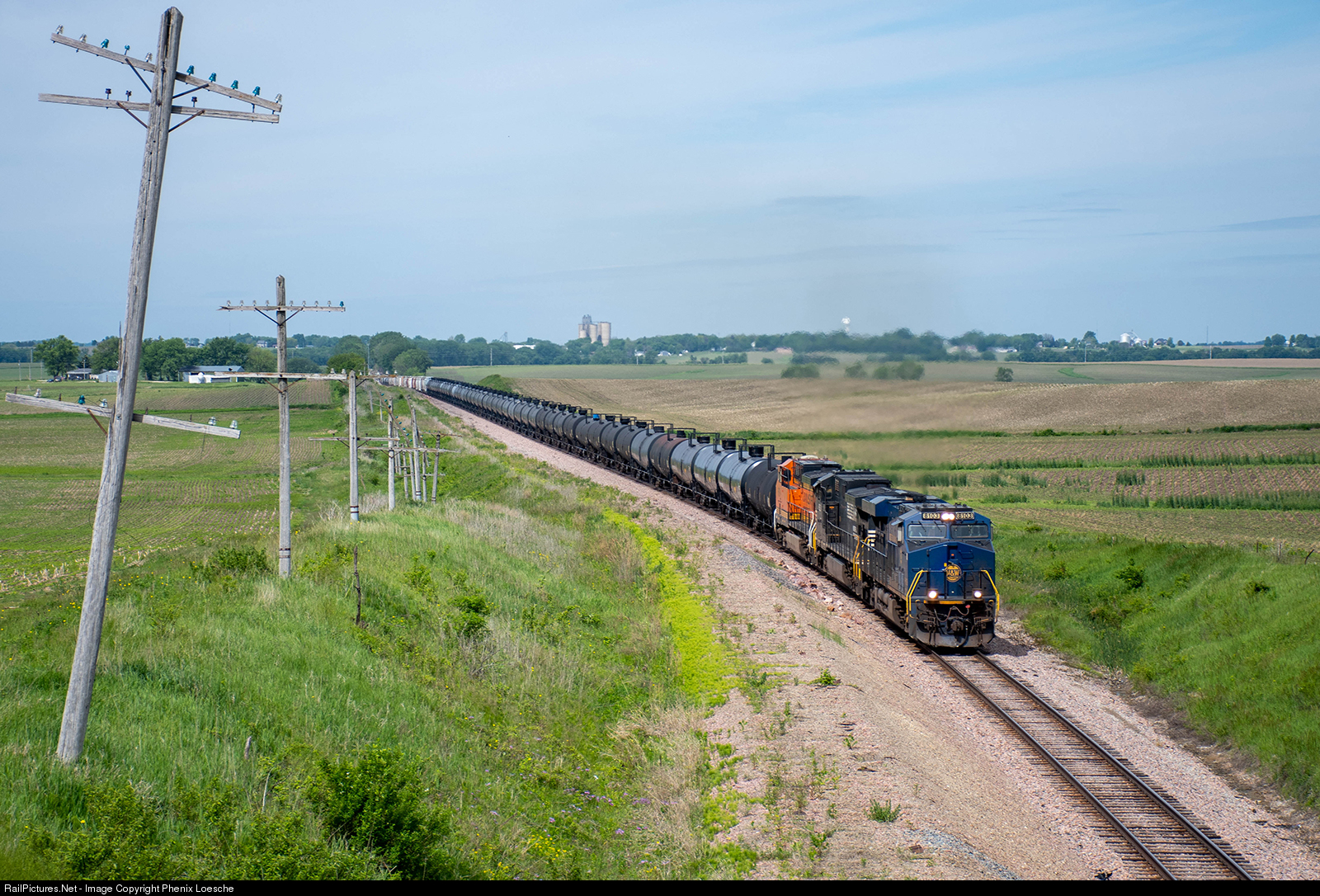| NS 8103, the Norfolk and Western heritage unit, led CN's M338 across their Iowa Division on Memorial Day 2021, seen here near Masonville, IA. |