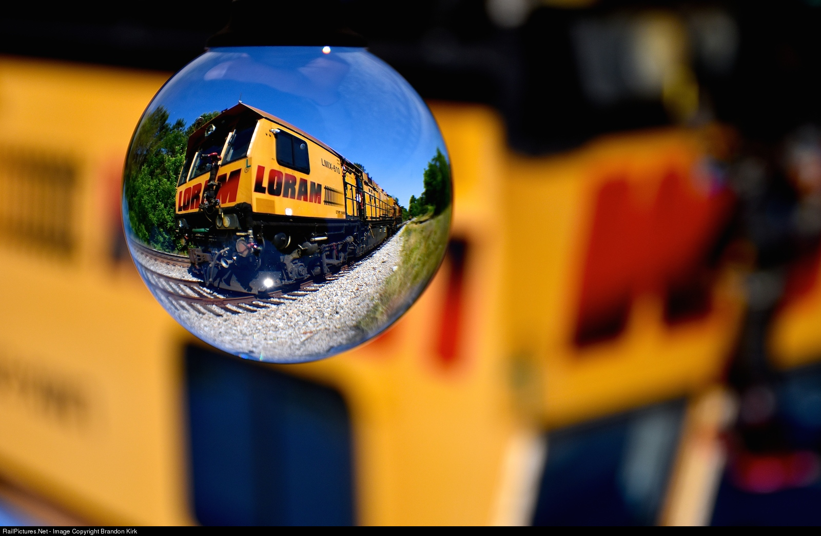 | Hanging out in the Roanoke siding today, is a LORAM Cross Grinder. Taking a different angle on snapping a pic of this beast, I decided to use a glass ball. So here's a crystal clear look at a top of the line grinding machine. |
