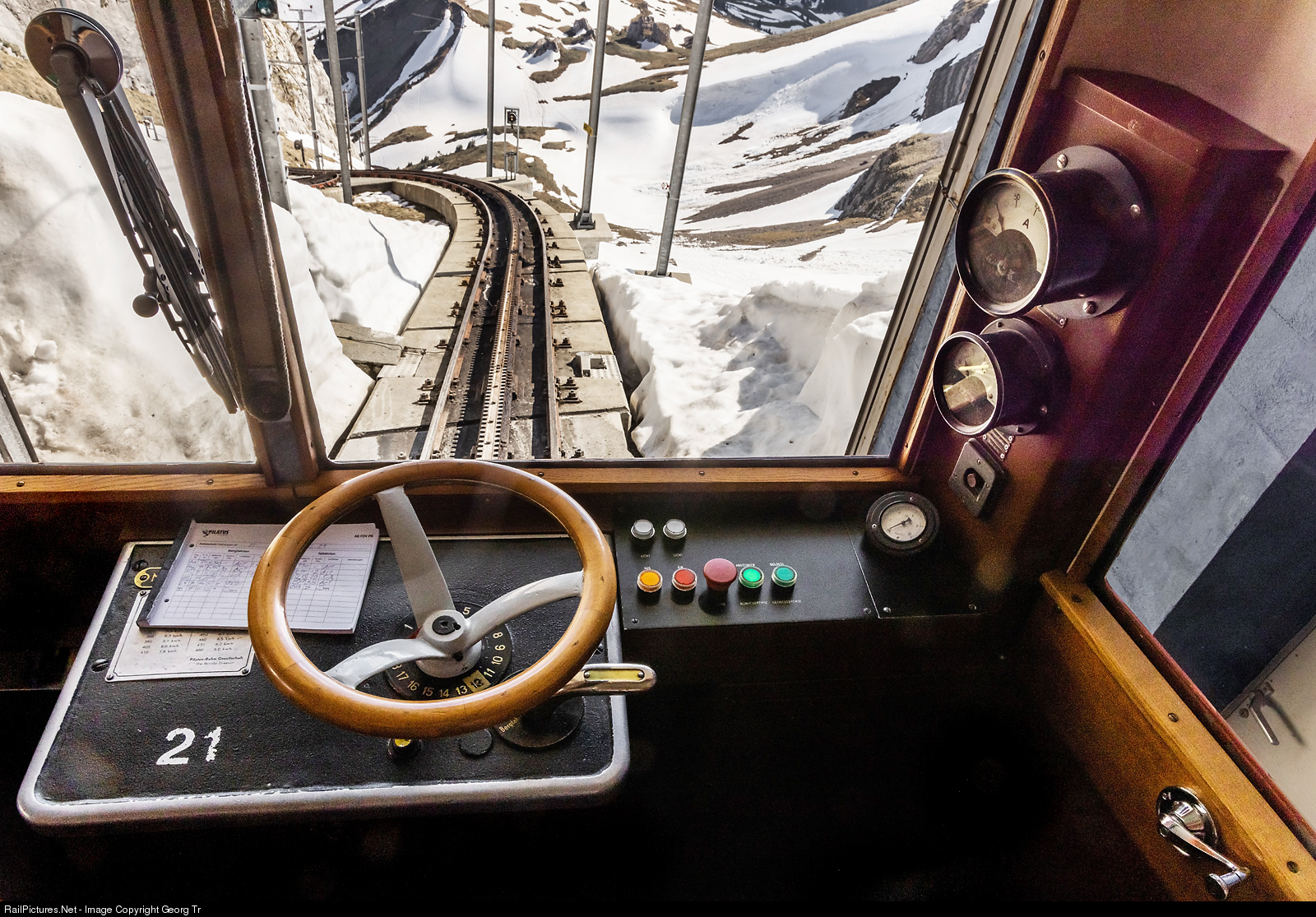 In the top station of Pilatus Kulm, 2066 meter a.s.l., cogwheel railcar Bhe 1/2 # 21, built in 1937 by SLM and MFO with 155 kW, is ready for departure as train CC 28a down to Alpnachstad. The Pilatus Bahn ordered 8 new railcars from StadlerRail and Calag Langenthal, to be delivered til 2022, to replace the more then 80 years old vehicles.