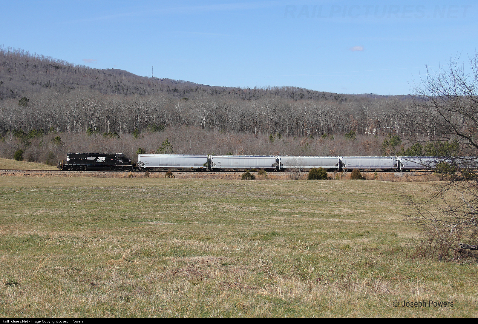 Norfolk Southern local A81 (a turn job that works east out of Decatur, Alabama) is on the Scottsboro Branch in Scottsboro, Alabama. The crew is shoving covered hoppers back toward the mainline where they will then head west back to their point of origin in Decatur.