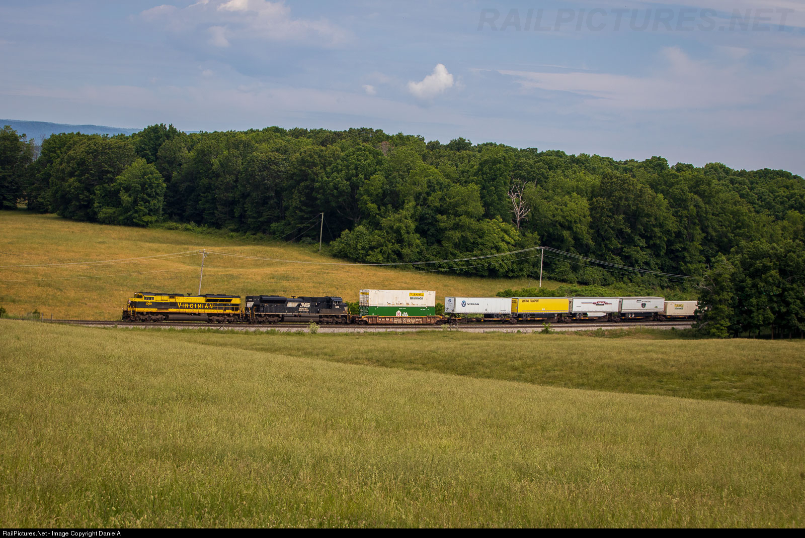 The Virginian leads train NS 201 west on the Pulaski District in Newbern, Va.