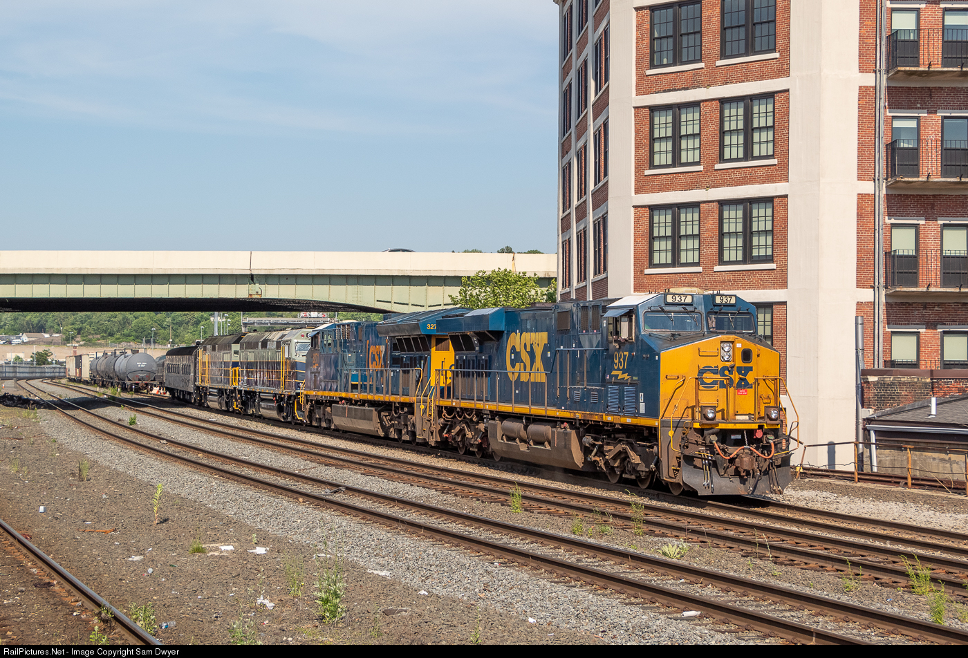 CSX's Office Car Special backs into Worcester with two freshly repainted F40s. Unfortunately, due to the tough grades on the Boston Line, the two F40s were capped by a duo of GEVOs, making this train look a whole lot less special from the front.