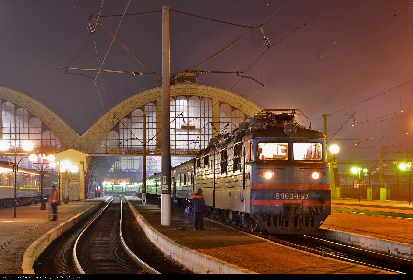 The AC electric locomotive VL80T-1157 with a passenger train #36 L'viv - Odesa