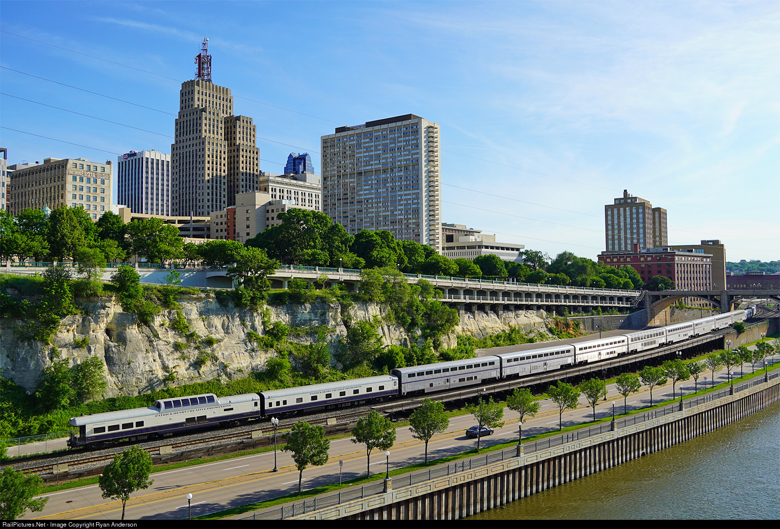 The Warren R. Henry Dome/Observation car brings up the rear of the eastbound Empire Builder.
