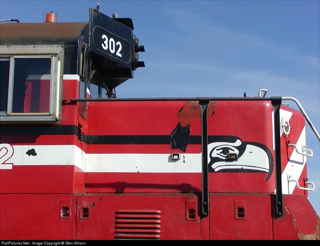 Still painted in WA Central colors, #302 shows the "seahawk" (for the football team) on her nose.
