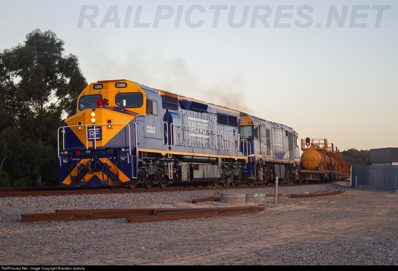 | In the final hours of light, C502 & GL104 proceed thru Cockburn Junction at restricted speed with 4351 sulphuric acid, headed towards Forrestfield yard. |