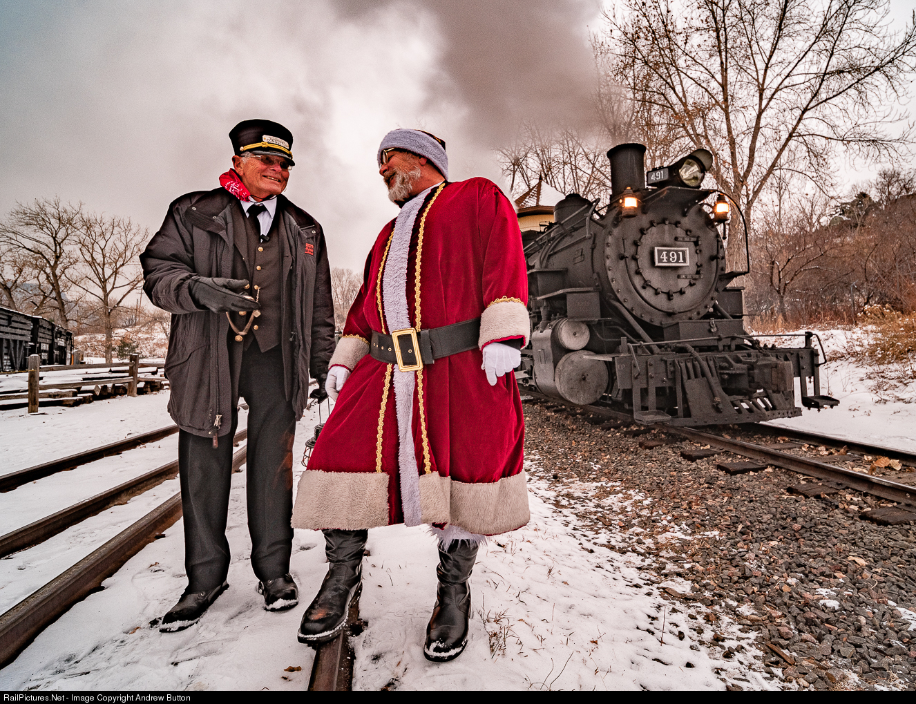 Conductor Al Bloudnt and Santa Clause at the Colorado Railroad Museum