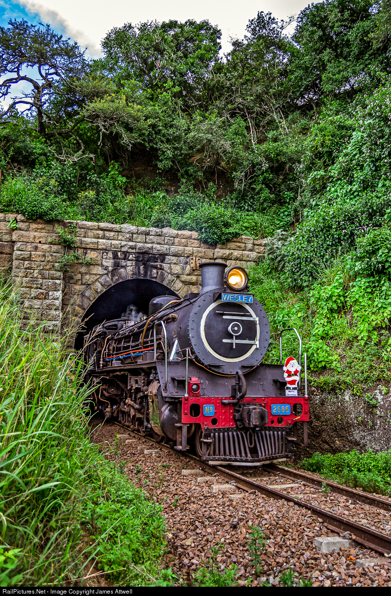 Umgeni Steam Railway's class 19D No.2685 glides down the gradient and through the tunnel at Drummond - along the old Natal mainline.