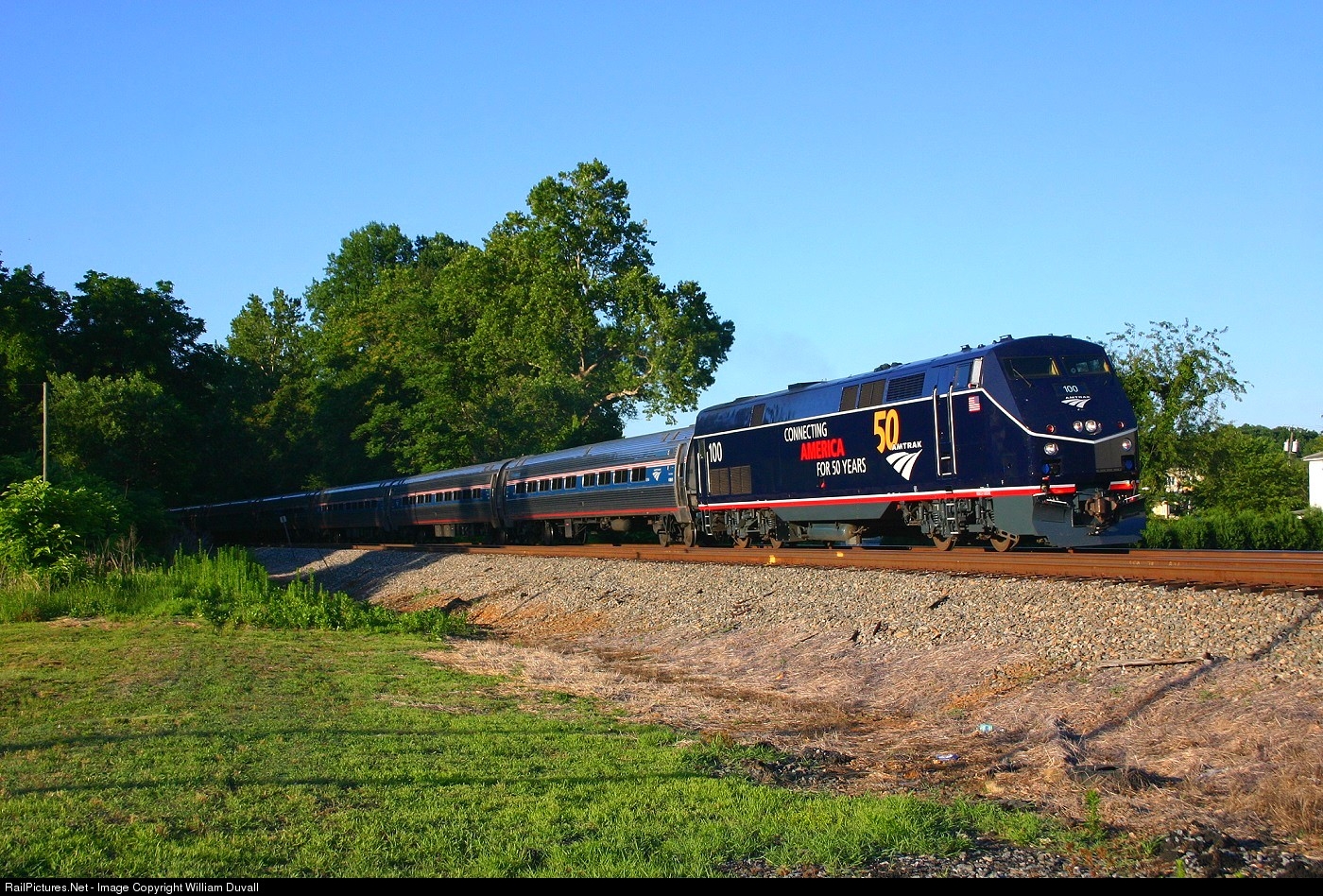 RailPictures.Net Photo: AMTK 100 Amtrak GE P42DC at Charlottesville, Virginia by William Duvall