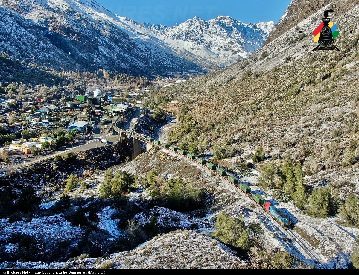 | Departure of train FEPASA #50.983 from CODELCO Andina copper mine in Saladillo mining camp, in the Andes mountain. Saladillo is located in Rio Blanco, a little village and former station of the transandine railway Los Andes (Chile) and Mendoza (Argentina) in Andes mountain (closed in 1984 except the section Los Andes - Rio Blanco which remains open to serve a CODELCO Andina copper mine located in Saladillo, Rio Blanco). |