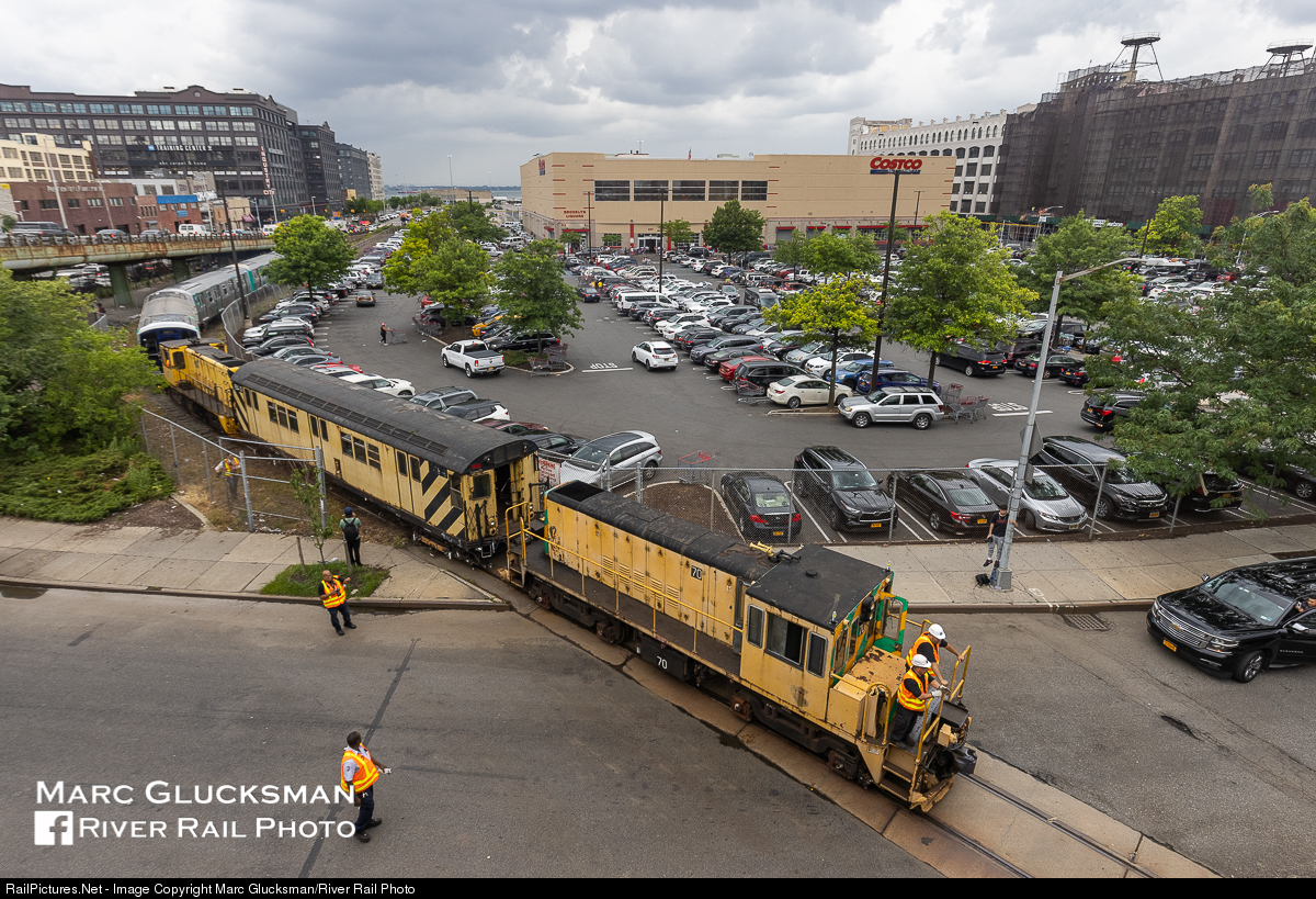 Shop At Costco? Metropolitan Transportation Authority - MTA NYCT Subway R-47 70 leads the delivery consist of Kawasaki R-211As towards 3rd Avenue in Brooklyn, NY near 39th Street on Thursday, July 1, 2021. This piece of trackage, the South Brooklyn Railway, is used as an interchange by NYCT. The R-211As are semi-permanently coupled as a 5 car set, no single units at Costco!